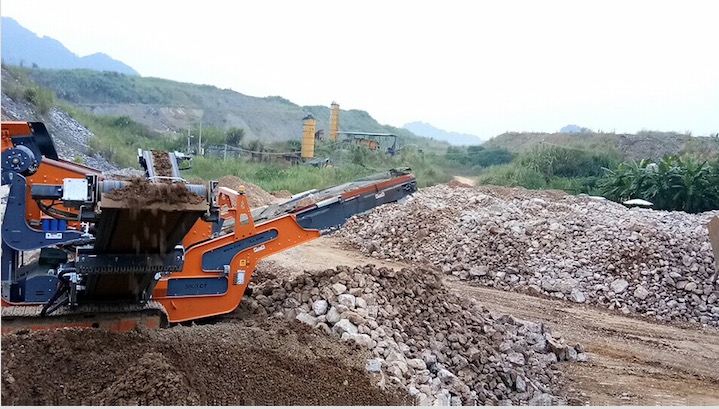 在我国南部边陲某废弃金矿,有 100 多万吨废矿石闲置逾十年,如今使用浦塔菲尔移动式重型筛分机5000CT 将废弃矿石筛分出 0-40mm 40-100mm 、和 100mm 以上三种规格的建筑石料,变废为宝,直接为客户带来每吨近30 元的利润。配合一台 CAT 320 的挖掘机,每小时能筛分废矿石 250-300 吨,后期结合浦塔菲尔移动式反击式破碎机与移动洗砂设备,将进一步挖掘原料价值,进行附加值更高的生产模式。